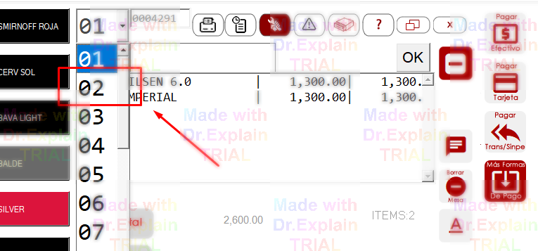 El sistema le permite que tenga varias facturas a la ves, abiertas. Esto es especialmente, útil cuando hay varios clientes y alguno decide esperar (ya sea para ordenar otra cosa) o para (sequir consumiendo).