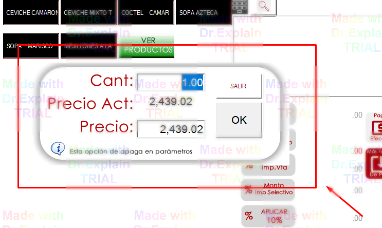 Una vez activo en parametros, cada ves que PRESIONE el botón de los productos.