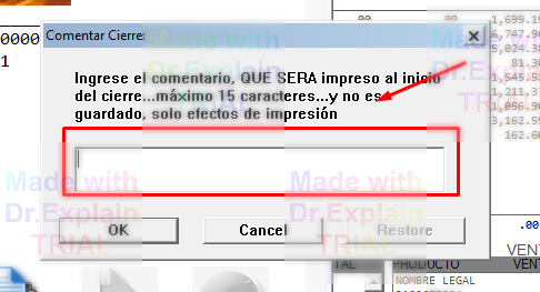 Puede incluir un comentario, para que sea impreso en el cierre.