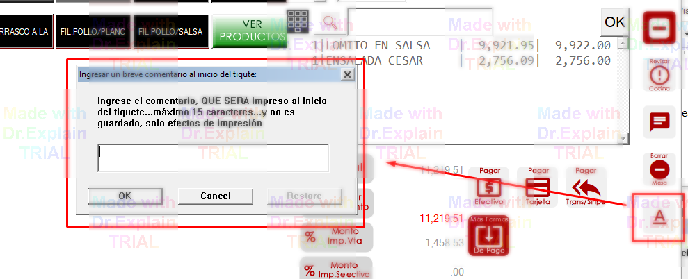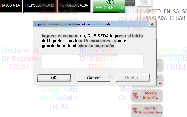 Si requiere un comentario corto máximo 30 caracteres, para que sea impreso en la factura: