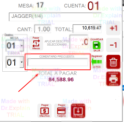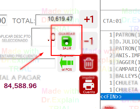 Finalmente, presione GUARDAR y así el comentario será impreso en cada pre-cuenta