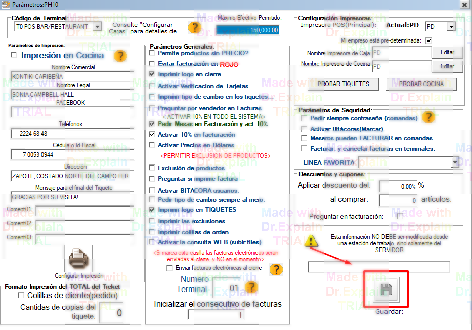 NOTA: Dado que en este maestro se establecen los parámetros de todo el sistema, debe de ser cuidadoso. Se recomienda un respaldo de información antes de modificar los parámetros.