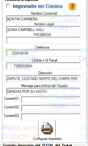 Para poner comentarios que serán impresos al final del tiquete debe de llenar los campos: