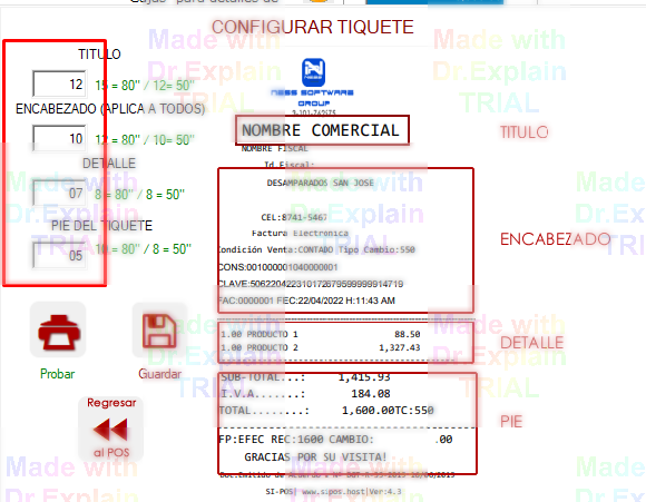 NOTA: El tamaño del ENCABEZADO, es el estandar que se usa para todos los repotes emitidos a la impresora POS>
