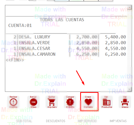 En la cuenta seleccionada marque CREAR CORTESIAS