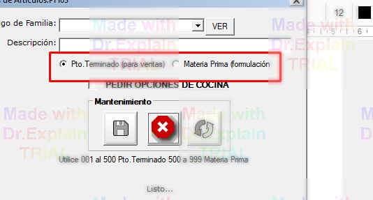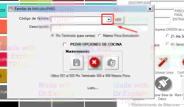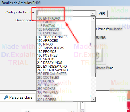 Para poder usar Sipos, inicialmente debe de definir las familas. Estas, son los primeros 3 espacios del código de producto. Además es el nombre de botón de las categorías que serán impresos.