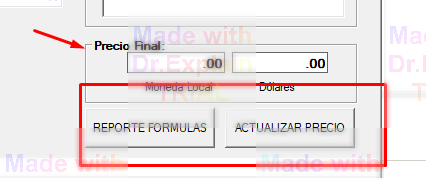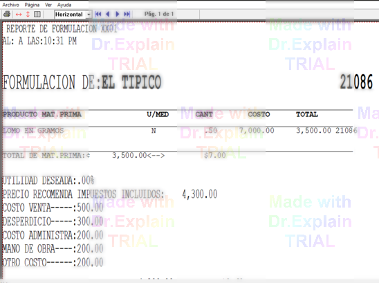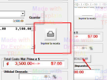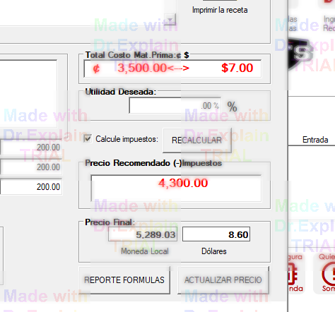 Puede imprimir un reporte de comparación de recetas, y puede adicionalmente actualiza el precio del producto, una ves que haya recalculado la receta.