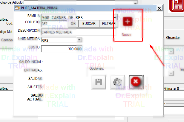 Presione NUEVO llene los datos y repita la acción para todos los productos de su materia prima.