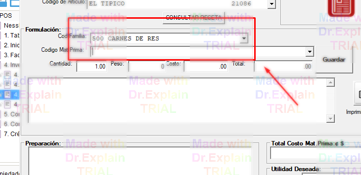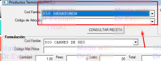 Para crear las recetas, inicialmente debe de crear los productos y las familias que van a ser parte de su receta.