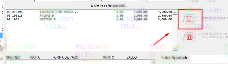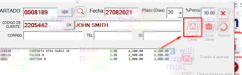 Revise los datos de la factura y presione GUARDAR APARTADO.