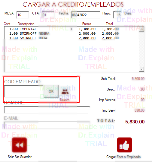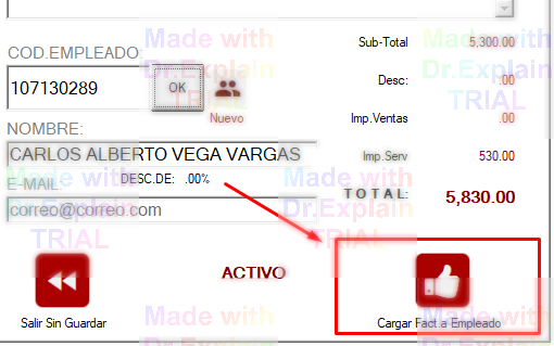 Seleccione el cliente y asigne la factura haciendo CARGAR FACT.A EMPLADO