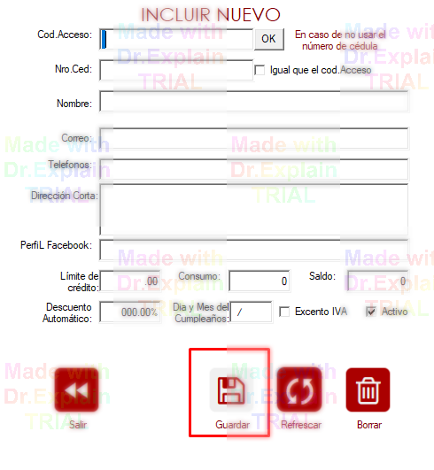 Llene los campos, necesarios. Y finalmene guarde.