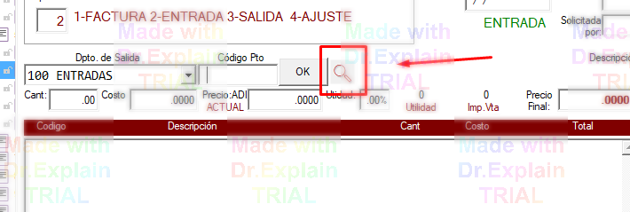 Presione BUSCAR, o digite el código directamente, si lo sabe.