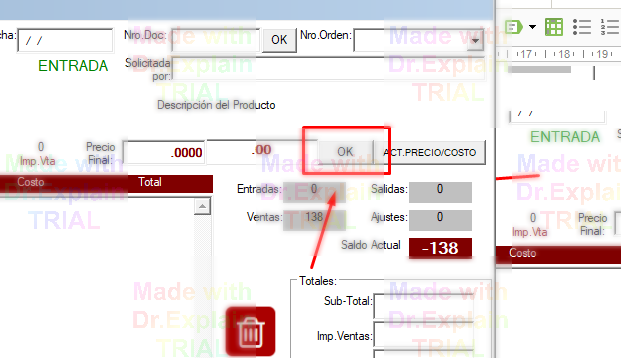 Si requiere hacer una entrada completa de los productos, debe de ir a configuración