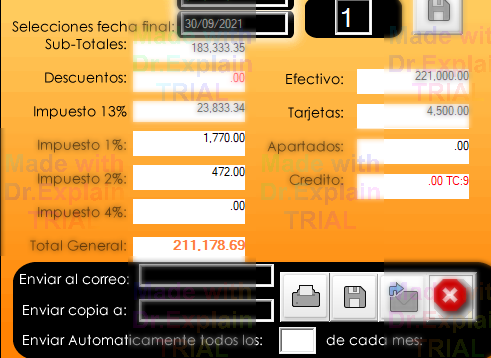 SiPOs, le permite que usted envie la información básica contable a un correo específico. Especialmente útil para contadores o despachos.