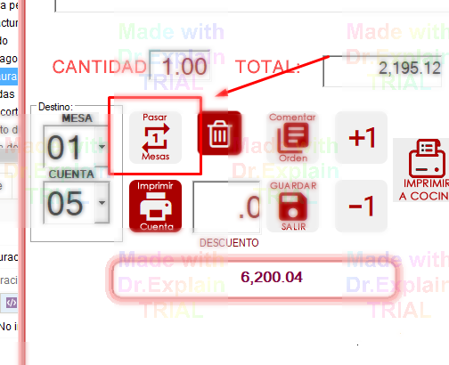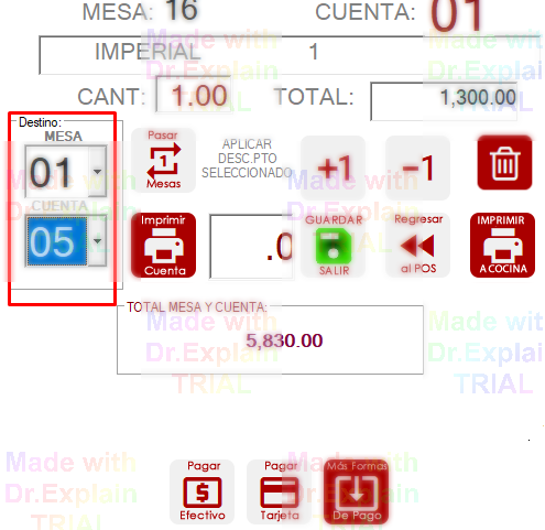 Para pasar entre cuentas, seleccione el producto y seleccione la MESA FUENTE (en la que está) y la mesa (DESTINO) a donde va.