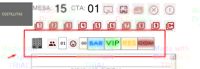 Puede establecer el tipo de cuenta (BAR = Barra ), (VIP).(RES=Reservada). O comentar y agregar algún texto