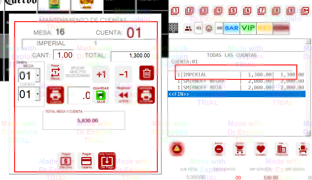Haga clic sobre cualquier producto de la cuenta para mantenimiento. Emitir al pre-cuenta o cerrar una cuenta.