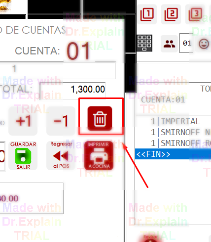 Para eliminar un producto seleccione de la cuenta y presione ELIMINAR