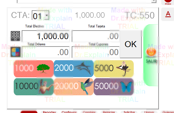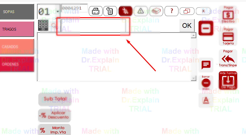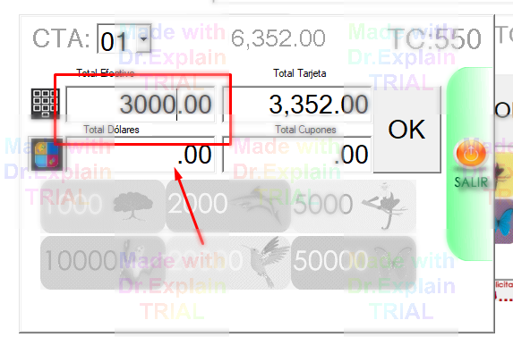 Digite el monto en EFECTIVO (el sistema calculará de forma automática), el pago en tarjeta.)