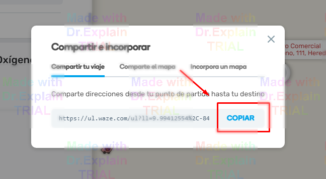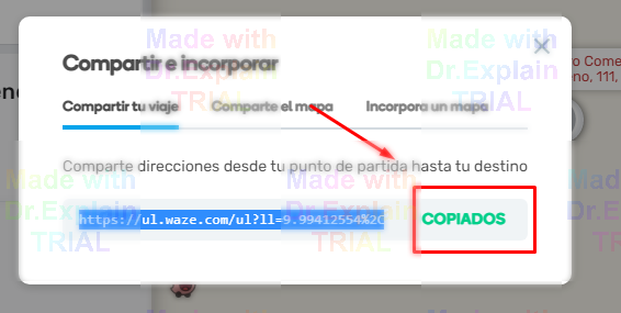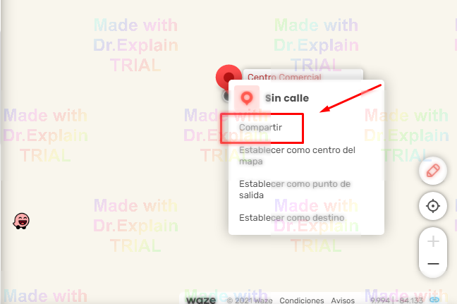 En WAZE, presione CLIC derecho y selecciona COMPARTIR