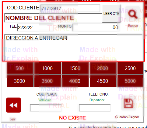 Digite el código asignado al cliente (Cédula o numero de telefono).