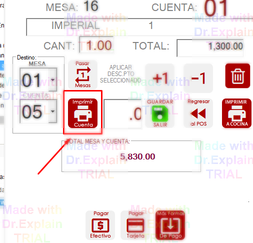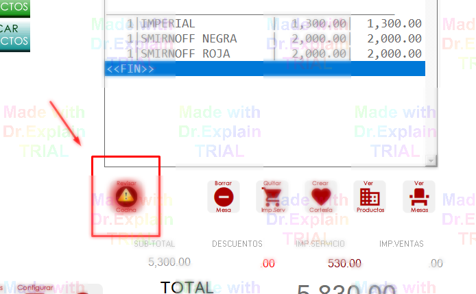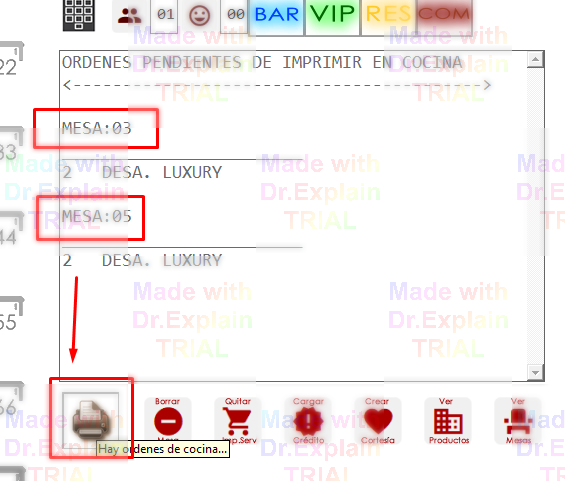 Nota: Los productos deben de estar configurados para que se impriman en cocina.