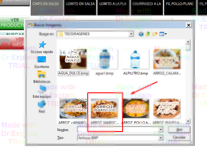 El sistema le permite que asocie una imagen a cada producto. Esto solo se puede hacer en el módulo de MESAS.