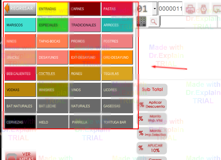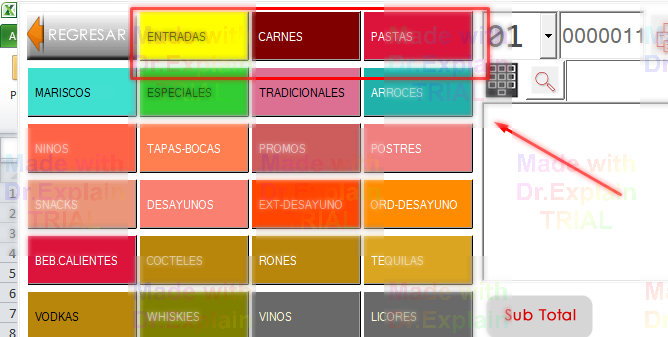 Estas familias son a su ves, los botones principales del sistema de facturación. Cada familia es una categoría en facturación.