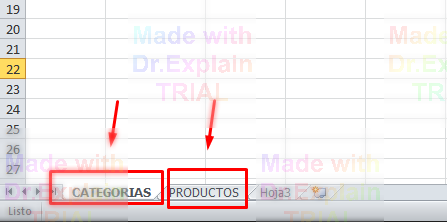 Son 2 pestañas (CATEGORIAS Y PRODUCTOS).