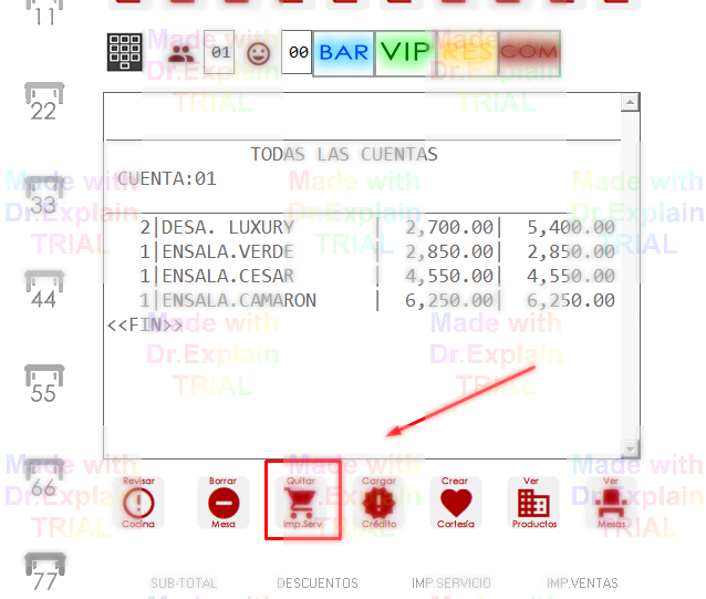Carque la cuenta, y presione QUITAR IMP.SERV