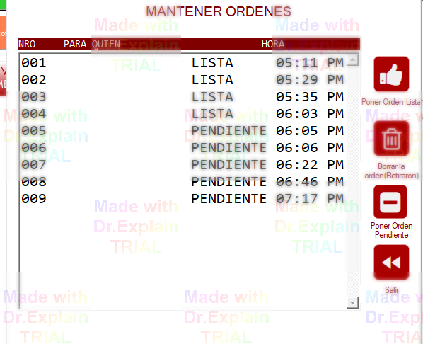 El sistema cuenta con un sistema para poner las ORDENES a la vista de los clientes. Esto generalmente en una pantalla conectada por medio de HDMI, desde la PC hasta la o la(s), pantallas.